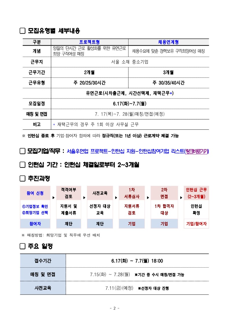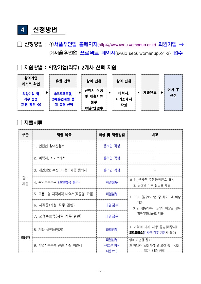 모집기업/직무 : 서울우먼업 프로젝트-인턴십 지원-인턴십참여기업 리스트(링크바로가기)