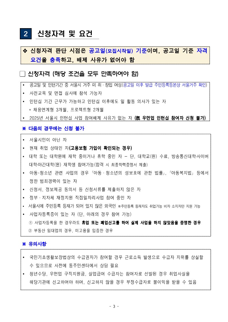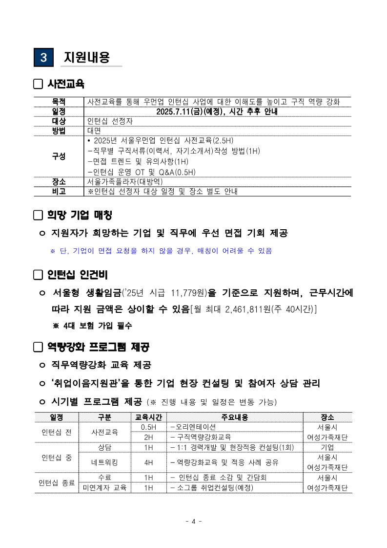 - 2025년 서울시 인턴십 사업 참여배제 사유가 없는 자 (旣 우먼업 인턴십 참여자 신청 불가)