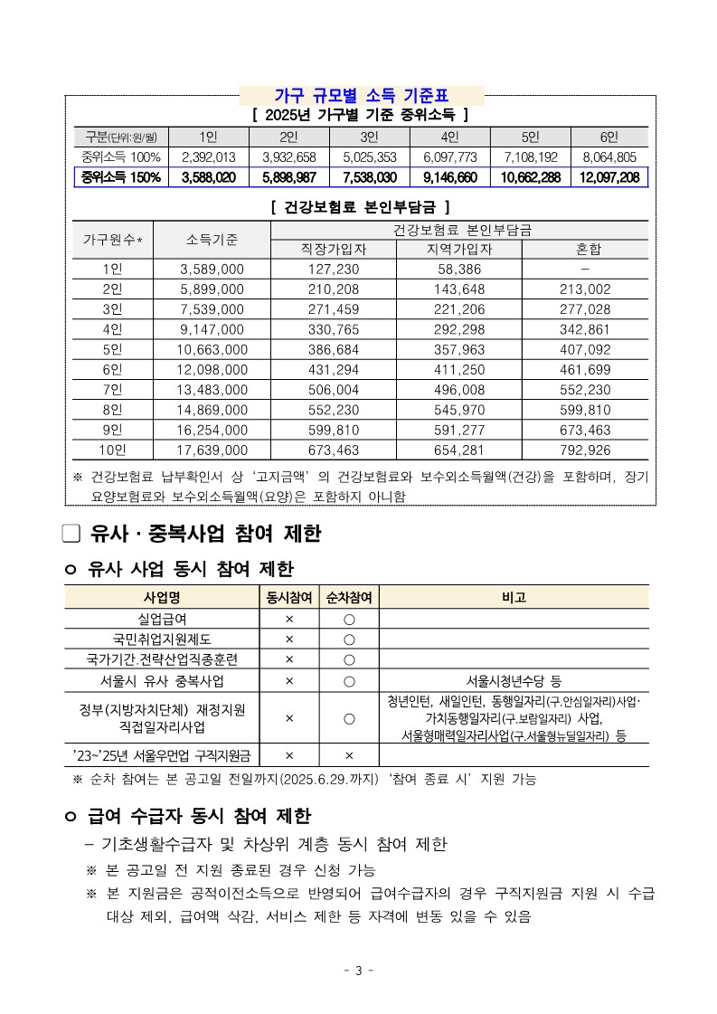 참조) ③ 중위소득 150% 이하 가구 ④ 유사·중복사업 미참여자(본 모집공고일