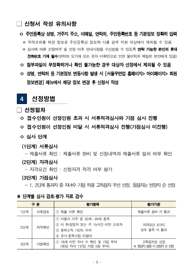① 서울시 거주(주민등록기준) ※ 대한민국 국적인 자 ② 30세~49세