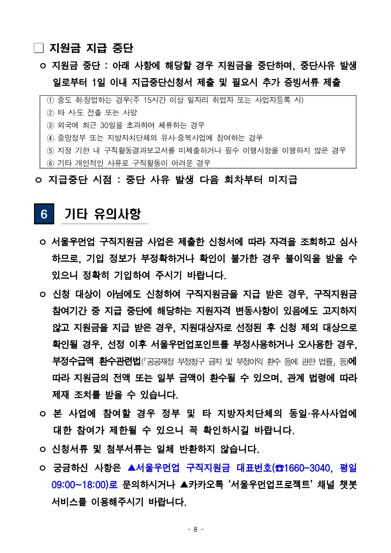 이후 취창업성공금 신청 및 수급 시까지 서울시 거주, 유사중복사업 미참여 요건